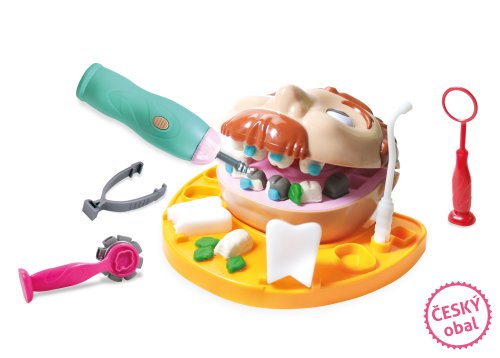 6 modelovacích barev zubařské nástroje model úst a forma vrtačka (2xAA baterie nejsou součástí) Doporučený věk: od 3 let