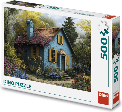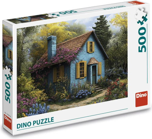 Ponořte se do světa klidu a nádherných barev s tímto 500dílným puzzle od DINO! Obraz zachycuje okouzlující modrý domek s cihlovou střechou, ukrytý v bujné a rozkvetlé zahradě. Tato relaxační skládačka je ideální pro chvíle odpočinku a pro milovníky přírody a malířského stylu.