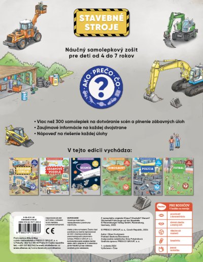 Jak? Proč? Co? V tomhle naučném samolepkovém sešitě pro děti od 4 do 7 let najdete odpovědi snad na všechny zvídavé otázky týkající se stavění a stavebních strojů. Na každé dvoustraně se dočtete spoustu zajímavostí, a navíc máte k dispozici přes 300 samolepek k dotváření scén a plnění zábavných úkolů! Ty zapeklitější vám dají možná trošku zabrat, ale žádný strach – na konci knížky nechybí malá nápověda…