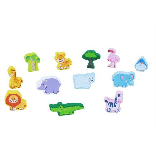 Dřevěné figurky s motivem ZOO ve stylovém kufříku. Sada obsahuje 12 ks dřevěných figurek zvířat a rostlin.