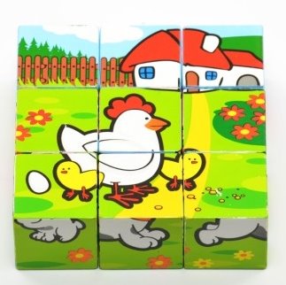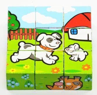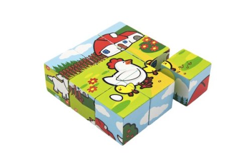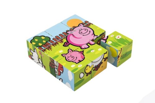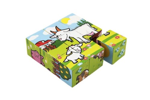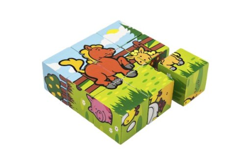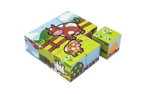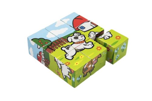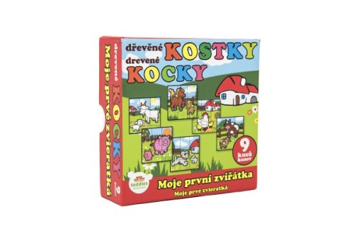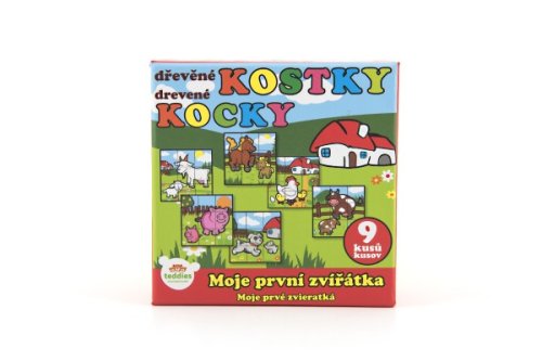 Dřevěné kostky s barevnými obrázky domácích zvířátek jsou výborná volba pro nejmenší. Při jejich správném poskládání se zobrazí jeden ze šesti obrázků, hra tím napomáhá rozvíjet u dětí logické uvažování, fantazii a jemnou motoriku. Při stavění a bourání komínů děti zjistí, jak funguje rovnováha a pomůže jim to v chápání příčiny a následku. Obsahuje 9 ks, v dřevěné krabičce 11 x 11 x 6 cm. Vhodné pro děti od 12 měsíců.