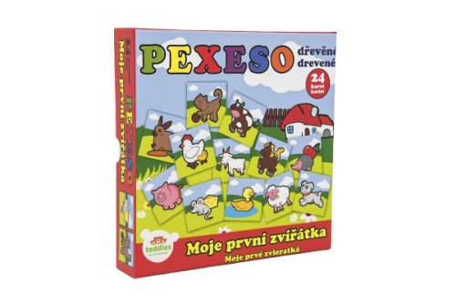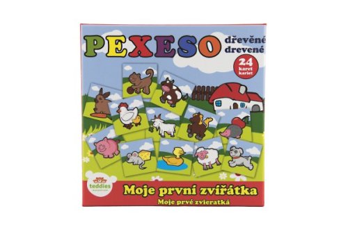 Dřevěné pexeso s motivem domácích zvířátek rozvíjí jemnou motoriku dítěte a paměť. Pexeso je ideální pro menší děti, díly jsou mnohem trvanlivější než papírové provedení. Vhodné od 12 měsíců