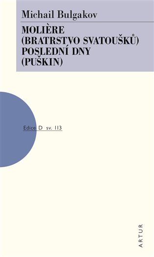 Edice D ve svém 113. svazku představuje autora slavného románu Mistr a Markéta jako dramatika. Jde o dva pozoruhodné portréty dvou světových dramatiků Moliera a Puškina, jejichž dramatické životní osudy slouží autorovi k obecnějšímu zamyšlení o vztahu umělce a společnosti, která se k němu dokáže zachovat i nevděčně krutě, o životě umělce, jehož hledání reality se střetá se zájmy mocných. Vychází v překladu Aleny Morávkové.