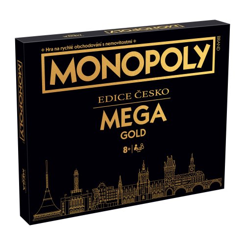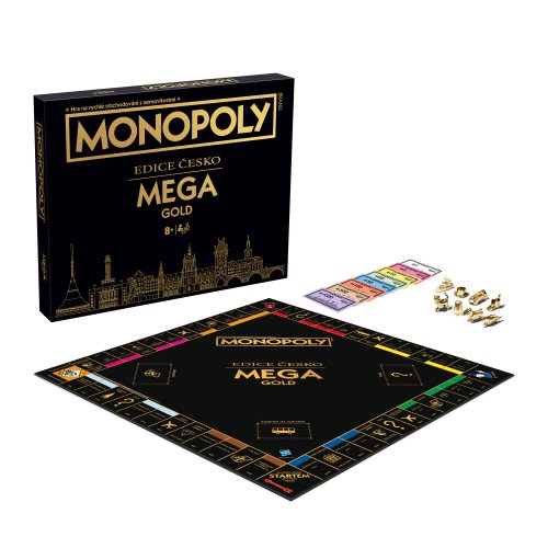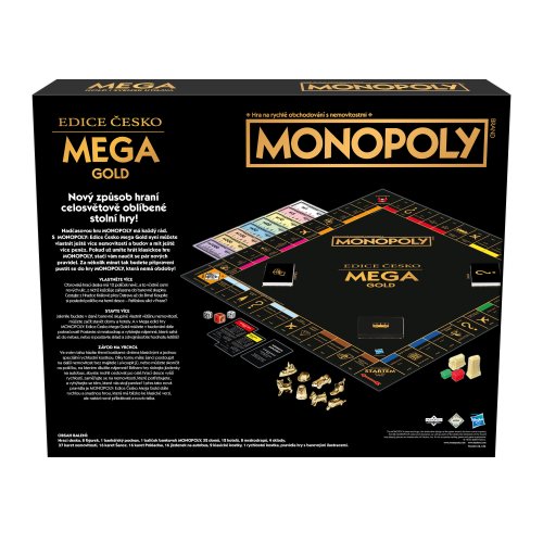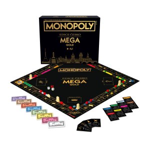 MONOPOLY MEGA Gold Česko. Zlatá MEGA edice hry MONOPOLY s tématikou Česka. Hra pro 2-6 hráčů.