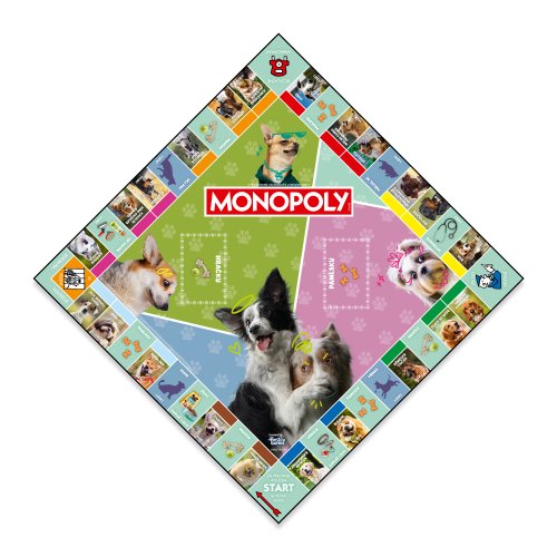 MONOPOLY Psi nová verze CZ. Společenská hra MONOPOLY s tématikou pejsků. Pro 2-6 hráčů. Obsahuje 6 unikátních sběratelských figurek. Co si psi myslí, když na nás tak zírají? Co dělají naši čtyřnozí mazlíčci, když odcházíme z domu? O co by se s námi náš čtyřnohý přítel podělil, kdyby mel tu možnost? V tomto povedeném vydání MONOPOLY PSI objevíte ty nejoblíbenější psí plemena, a také zjistíte, jaké je to žít skutečný psí život. Karty „Hračky” a „Pamlsky”, skrývají úsměvné ukázky psí moudrosti pro