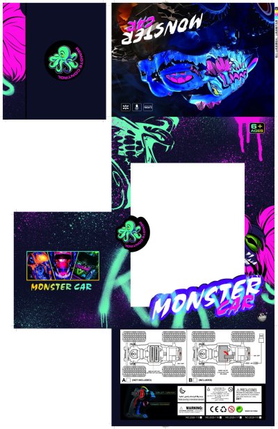 RC Monster auto 2.4G se světelným efektem se pohybuje doleva, doprava, dopředu a dozadu. Maximální rychlost 5km/h. Frekvence 2405MHz – 2475Mhz, maximální radiofrekvenční výkon 5mW, dosah dálkového ovládání 20 m.