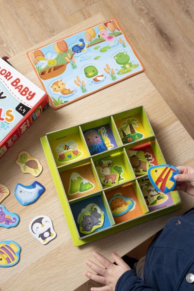 Zařazovací hra k objevování a poznávání zvířátek založená na metodě Montessori. Tento druh Montessori her pomáhá dětem učit se zábavným a efektivním způsobem s využitím všech jejich smyslů. Vhodné pro děti od 1 roku.