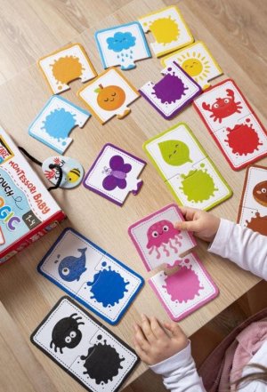 Hmatová hra speciálně vyrobená pro malé děti. Zdrsněný povrch pomáhá malým dětem začít rozpoznávat hmatem! Spojte barevnou kombinaci k sobě. Sada obsahuje 20 dílků. Tento druh Montessori her pomáhá dětem učit se zábavným a efektivním způsobem s využitím všech jejich smyslů. Vhodné pro děti od 1 roku.