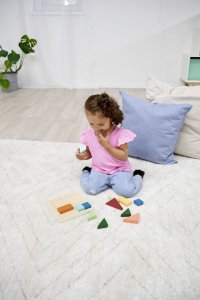 Montessori čtvercové geometrické puzzle nejsou jen pastvou pro oči. Deska se skládá ze 4 čtverců a obsahuje 12 dílků různých tvarů a barev. Cílem skládačky je vyplnit plochu čtverce. Dílky lze také míchat dohromady v různých barvách. Puzzle čtvercová skládačka Montessori je vyrobena ze 100% březového a lipového dřeva s certifikátem FSC a jsou vhodné pro děti od 2 let.