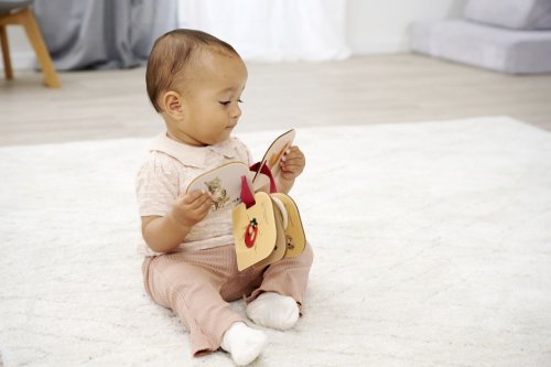 Krásná dřevěná knížka je prvním společníkem vašeho dítěte. Na 6 dřevěných stránkách najdete z obou stran roztomilé obrázky zvířátek. Knihu lze pomocí kroužku připevnit ke kočárku nebo autosedačce. Nebo ji umístěte před dítě, aby si mohlo obrázky prohlížet samo. Velikost a zaoblené rohy jsou ideální pro malé dětské ruce. Obrázková knížka Montessori je vyrobena ze 100% lipového dřeva s certifikátem FSC a je vhodná pro děti od 1 roku.