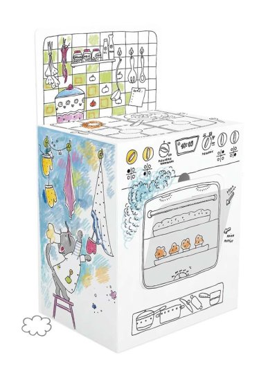 Sporák je originální hračka k vymalování pro holky i kluky. Je robustní a obsahuje spoustu veselých obrázků, které si děti mohou vymalovat a pak složit 3D maketu. Je vyroben ze silného a pevného kartonu. Velké obrázky a karton jsou vhodné pro vymalování pastelkami, voskovkami, fixy nebo barvami. Otevírací trouba i celková výška sporáku 75 cm dětem umožní hrát si na opravdové kuchaře a přinese spoustu zábavy. Výška: 75 cm