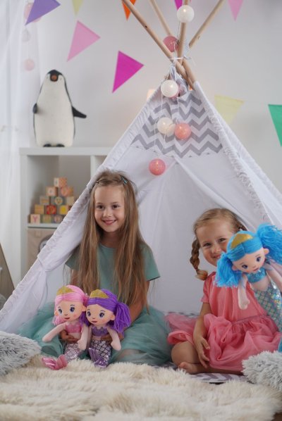 Látková mořská panna s dlouhými vlasy a korunkou. Velikost 30 cm.