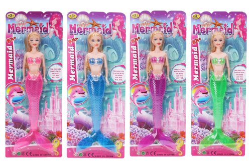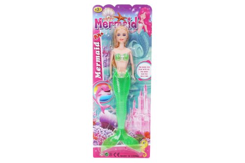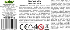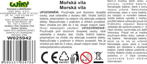 Mořská víla. Velikost 30 cm. Světelné efekty. Přepínač na zádech víly. 3xAG3 baterie nejsou součástí. 4 varianty - růžová, modrá, fialová, zelená.