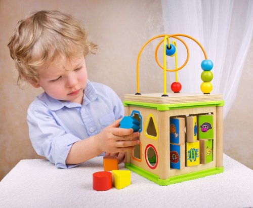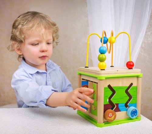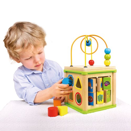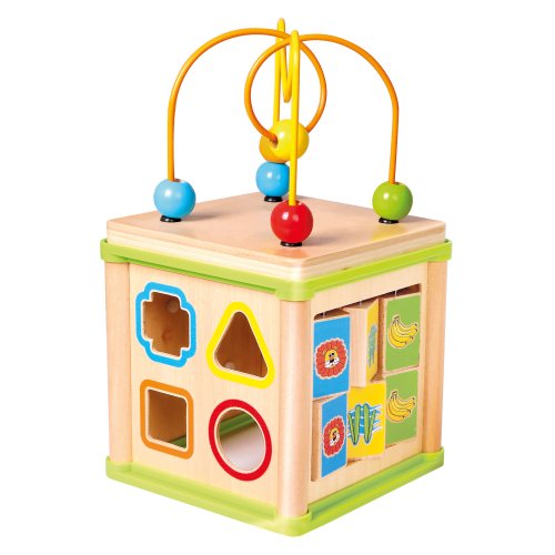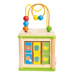 Multifunkční motorická kostka je kvalitní hračkou pro malé šikulky. Díky rozmanitým aktivitám, které mohou děti na každé stěně kostky plnit, procvičují jemnou motoriku ruky, logiku a soustředěnost. Materiál: Dřevo a plast