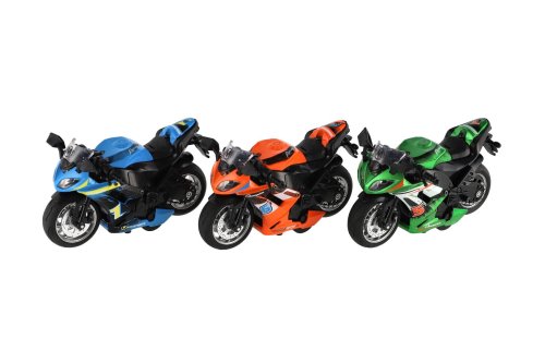 Kovový model krásné motorky s autentickým designem ve třech barevných provedeních. Hračka, kterou ocení každý malý závodník, jezdec, či motorkář. Jezdí na zpětné natažení. Baterie 3x AG3 jsou součástí výrobku. Rozměry výrobku 12 x 7 x 6 cm. Vhodné pro děti od 3 let.