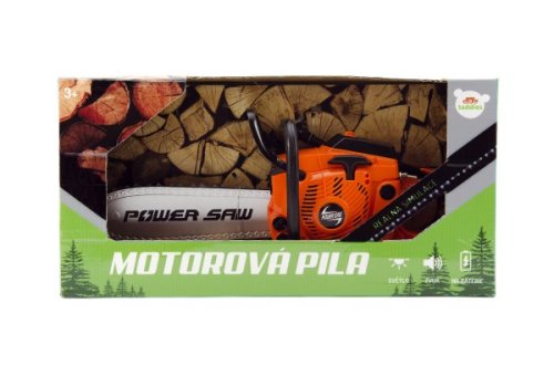 Při práci vydává realistické zvuky a světelné efekty jako skutečná pila při ořezávání stromů a větví. Nastartováním a přidáním plynu se roztočí řetěz, na baterie, v krabici. Rozměr pily: 41 cm Vhodné od 3 let