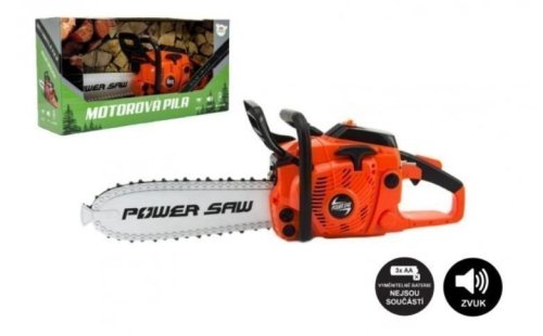 Při práci vydává realistické zvuky a světelné efekty jako skutečná pila při ořezávání stromů a větví. Nastartováním a přidáním plynu se roztočí řetěz, na baterie, v krabici.Rozměr pily: 41 cmVhodné od 3 let