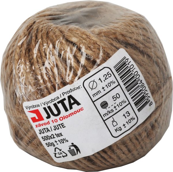Vázací motouz přírodní. Pro použití doma, v kanceláři či skladu. Průměr: 1,25 mm. Návin: 50 m. Hmotnost: 50 g. Materiál: juta. Barva: přírodní.