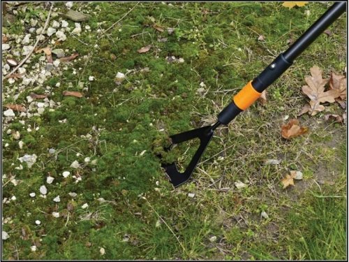 Motyčka má ostrou hranu k odstranění plevelů, kypření půdy, tvarování řádků před setím nebo k odstraňování mechu z teras. Čepel z kalené bórové oceli. Doporučená násada QuikFit L 1000661. Výška: 28 mm, délka: 295 mm, šířka: 125 mm, hmotnost: 241 g. Staré Fiskars číslo: 136502.