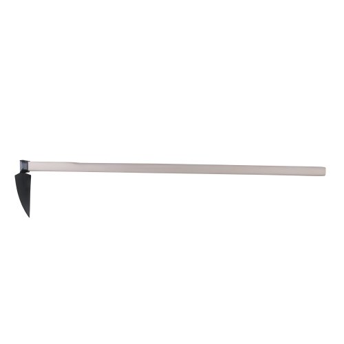 Kovaná motyka s násadou určená pro práce na zahradě.