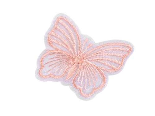 Motýl vyšívaný na monofilu k našití a nalepení - pudrovo-lososová (10 ks)