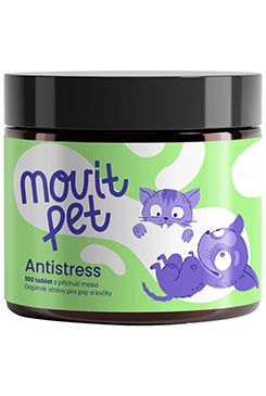 Komplexní doplňkové krmivo MOVit PET Antistress chutné tablety s přírodními složkami pro podporu klidného chování psů a koček. Obsahují hořčík, tryptofan a extrakt z heřmánku – látky, které jsou ceněny v souvislosti s rovnováhou nervové soustavy a zvládáním stresu. Ideální při změnách prostředí, cestování, návštěvě veterináře nebo jiných stresových situacích. S játrovou příchutí pro snadné podávání.