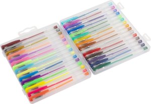 Bohatá sada 30 barevných gelových per v praktickém obalu.