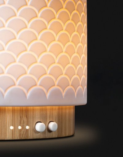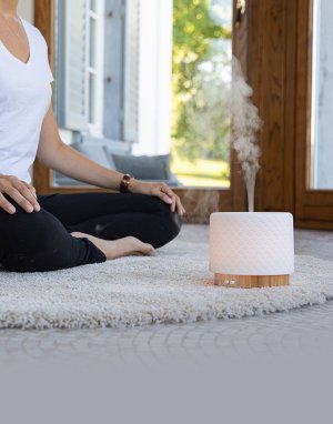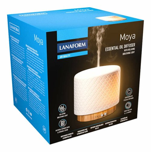 Ultrazvukový rozptylovač vůní Moya s keramickým krytem propouštějící jemné světlo a základnou z přírodního bambusu spojuje pohodlí a kvalitu. Díky ultrazvukové technologii a velké nádržce na 280 ml účinně rozptyluje vaše éterické oleje v závislosti na zvoleném cyklu a času. Moderní a stylový rozptylovač vůní Moya má mnoho užitečných vlastností, což z něj dělá správného partnera při zajišťování vaší pohody. Navíc nejde o ledajaký difuzér. Můžete s ním trénovat dokonce i správný rytmus svého dýchání. Světlo každých 5 sekund mění svou intenzitu a v tomto rytmu se pomalu nadechujte a vydechujte, zklidňujte svůj dech a dostaňte se tak do příjemné meditace.