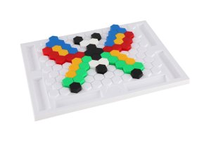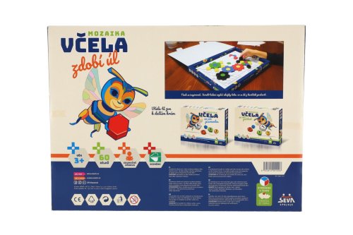 Stavebnice mozaikového typu Včela zdobí úl je nejen skvělá hračka, ale i výborná vzdělávací pomůcka pro předškoláky. Děti předškolního věku si procvičí nejen svoji motoriku, ale naučí se abecedu (Včela se učí) nebo základy počítání (MOSAIC MAXI/2). Základ stavebnice tvoří podložka, která připomíná včelí plástve. Na tuto podložku se skládají různobarevné dílky stavebnice a děti si mohou vytvořit různé obrázky dle své fantazie nebo přiloženého návodu. Všechny stavebnice Mosaic MAXI jsou vzájemně plně kompatibilní, takže ji můžete neustále rozšiřovat a doplňovat o nové dílky.Rozměry balení 43 x 32 x 4 cm.Vhodné pro děti od 3 let.