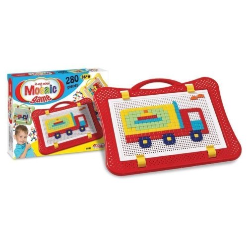 Mozaiková hra rozvíjí jemnou dětskou motoriku, tvořivost a fantazii. Obsah balení tvoří děrované hrací desky a 280 ks barevných kolíčků s hlavičkami různých barev, průměrů a tvarů. Pomocí těchto kolíčků, které se zasazují do otvorů v hrací desce, tvoří dětí různé obrázky nebo vzory. Vyrobeno z plastů špičkové kvality. Rozměr obalu je 375x65x295
