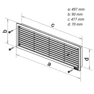 • Obsah balení: 2 ks větrací mřížky, vruty a hmoždinky.