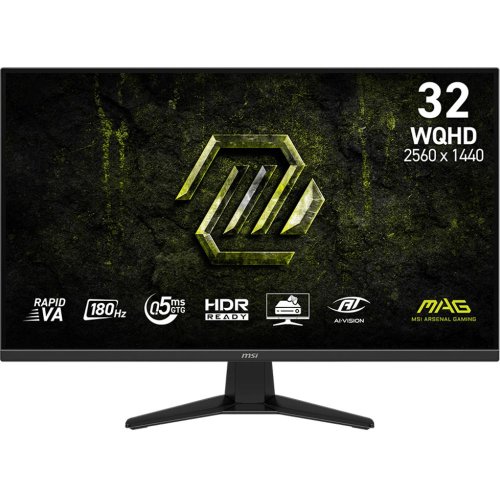 Úhlopříčka: 31,5" / 80 cm Rozlišení: 2560 × 1440 px Formát displeje: 16:9 Typ displeje: VA Jas: 300 Nits Obnovovací frekvence: 180 Hz Kontrast statický: 3500:1 Kontrast dynamický: 100000000:1 Odezva: 0,5 ms Pozorovací úhel: 178° Tvar obrazovky: Rovná Orientace: Horizontální Barevná hloubka: 10 bit