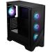 Kvalitní počítačová skříň formátu Middle Tower nabízí jednu 2,5" a dvě kombinované 2,5"/3,5" pozice pro SSD a pevné disky. Skříň je vybavena průhlednou bočnicí a poloprůhledným čelem s perforací pro optimální proudění vzduchu. Předinstalovány jsou čtyři 120mm ventilátory s ARGB podsvícením. Rychlou změnu podsvícení umožňuje tlačítko na horním panelu. Zde se také nachází dva porty USB 3.0, sluchátkový výstup a audio vstup pro mikrofon. Ve skříni je dostatek prostoru pro chladič CPU do výšky až 160 mm a grafickou kartu o délce až 390 mm. Důmyslné řešení umožňuje pohodlné umístění až 360 mm dlouhého výměníku vodního chlazení na horní straně. Potěší také přítomnost prachových filtrů. Skříň je dodávána bez zdroje.