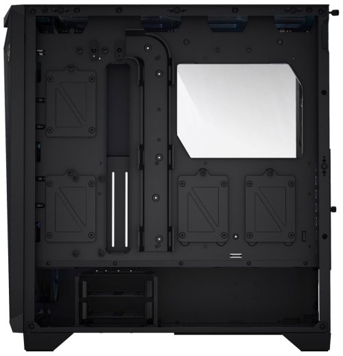 Moderní počítačová skříň s neotřelým designem, průhlednou bočnicí z temperovaného skla a poloprůhledným čelem s perforací pro optimální proudění vzduchu. Formát Middle Tower nabízí dostatek prostoru pro uložení šesti 2,5" disků, dvou 3,5" disků a až 12 ventilátorů. Předinstalovány jsou čtyři 120 mm ventilátory s adresovatelným RGB podsvícením. Rychlou změnu podsvícení umožňuje tlačítko na horním panelu. Zde se také nachází dva porty USB 3.0, jeden port USB-C, sluchátkový výstup a audio vstup pro mikrofon. Ve skříni je dostatek prostoru pro chladič CPU do výšky až 175 mm a grafickou kartu o délce až 360 mm. Důmyslné řešení umožňuje pohodlné umístění až 360 mm dlouhého výměníku vodního chlazení na přední či horní straně. Skříň je dodávána bez zdroje.