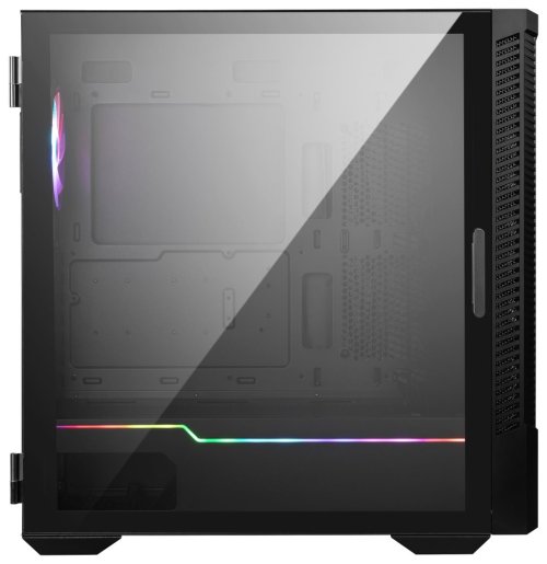 Kvalitní počítačová skříň formátu Middle Tower nabízí dvě 2,5" pozice pro SSD disky a dvě 3,5" pozice pro pevné disky. Skříň je vybavena průhlednou bočnicí a perforovaným předním panelem. Předinstalovány jsou čtyři 120 mm ventilátory. Přední panel společně s levou stranou skříně a jedním ventilátorem disponují ARGB podsvícením. Rychlou změnu podsvícení umožňuje tlačítko na horním panelu. Zde se také nachází dva porty USB 3.0, jeden port USB-C, sluchátkový výstup a audio vstup pro mikrofon. Ve skříni je dostatek prostoru pro chladič CPU do výšky až 175 mm a grafickou kartu o délce až 380 mm. Důmyslné řešení umožňuje pohodlné umístění až 360 mm dlouhého výměníku vodního chlazení na přední i horní straně. Potěší také přítomnost prachových filtrů. Skříň je dodávána bez zdroje.