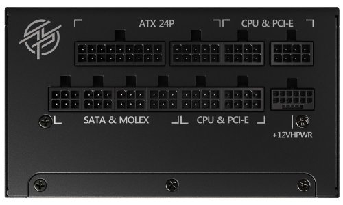 Napájecí konektory: 1× ATX 20+4pin, 2× EPS 4+4pin, 6× PCIe 6+2pin, 1× PCIe 5.0 (600 W), 12× SATA, 4× Molex, 1× floppy