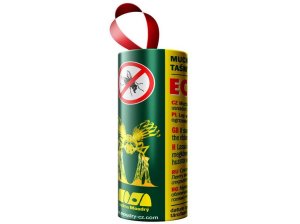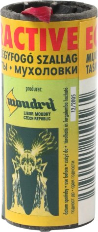 Klasická mucholapka - oboustranně lepicí pás papíru opatřený lákadly, který zaručuje účinný odchyt mouchy domácí (Musca domestica).