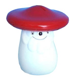 Plastová pokladnička v podobě červené muchomůrky. S touto pokladničkou našetříte určitě spoustu peněz.12cm od 4 let
