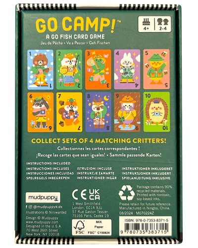 Raz, dva, tři a hrajem! Kdo nasbírá nejvíce čtveřic? Klasické kvarteto s táborovou tematikou je vhodné pro děti od čtyř let a je skvělou karetní zábavou pro celou rodinu. Oblíbená hra je určena pro skupinku alespoň dvou hráčů. S kartami lze hrát také hru Snap! nebo i pexeso. Užijte si zábavu v rodinném kruhu, ať už na cestách, nebo doma za deštivých dní. Hlavní vlastnosti: zlepšuje komunikační dovednosti a logické myšleníbalení vhodné na cestyobsahuje 40 karetrozvíjí obratnost a koncentracipro 2-4 hráče Značka a certifikát FSC® (Forest Stewardship Council) zaručuje, že dřevo, ze kterého byl produkt vyroben, nebylo vytěženo nelegálně a pochází z lesů obhospodařovaných šetrným či přírodě blízkým způsobem, ve kterém jsou dodržovány přísné environmentální a sociální požadavky. Značka FSC® na výrobku znamená, že svým nákupem pomáháte chránit lesy a podporujete šetrné, odpovědné či přírodě blízké hospodaření, díky kterému jsou naše lesy stabilnější, zdravější, mají přirozenou druhovou skladbu a lépe odolávají negativním následkům klimatických změn.