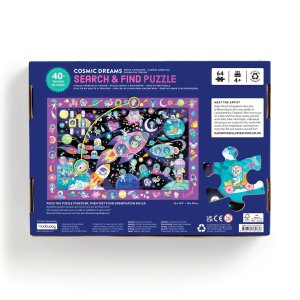 Fascinující vesmír! Planety, hvězdy, komety, rakety a roztomilá zvířátka jako astronauti. Bude to výzva! Skládání puzzle je jen polovina zábavy! Po dokončení puzzle si děti mohou otestovat své pozorovací schopnosti a postřeh a najít více než 40 předmětů a zvířat, které jsou zobrazeny po stranách, ve složeném obrázku. Puzzle je vytvořeno podle námětu Katie Wood, která se ráda inspiruje každodenním životem a přírodou. Provedení puzzle v pestrých barvách děti zaujme a motivuje je k hraní bez obrazovek. Skládání rozvíjí dovednosti v řešení problémů, prostorové uvažování a koordinaci ruka-oko, a to vše zábavnou formou. Puzzle je vyrobeno zodpovědně za použití vysokého podílu recyklovaného materiálu (90 % puzzle a 70 % obal) s certifikací FSC® a je potištěno pestrými netoxickými barvami. Spolu s pečlivě zabalenými odolnými dílky naleznete v pevné kartonové krabičce také letáček s návodným obrázkem. Hlavní vlastnosti 64 dílkůpodle námětu Katie Woodrozvíjí prostorové uvažování a koordinaci ruka-okoodvede pozornost dětí od obrazovekvyrobeno s použitím recyklovaných a udržitelně získaných materiálů s certifikací FSC®potištěno netoxickými barvamivhodné od 4 let Značka a certifikát FSC® (Forest Stewardship Council) zaručuje, že dřevo, ze kterého byl produkt vyroben, nebylo vytěženo nelegálně a pochází z lesů obhospodařovaných šetrným či přírodě blízkým způsobem, ve kterém jsou dodržovány přísné environmentální a sociální požadavky. Značka FSC® na výrobku znamená, že svým nákupem pomáháte chránit lesy a podporujete šetrné, odpovědné či přírodě blízké hospodaření, díky kterému jsou naše lesy stabilnější, zdravější, mají přirozenou druhovou skladbu a lépe odolávají negativním následkům klimatických změn.