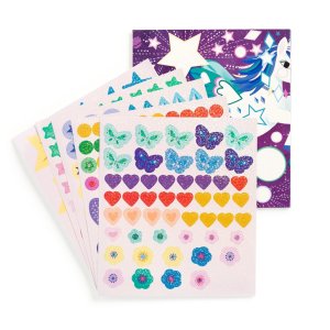 Rozvíjejte fantazii svého dítěte a vydejte se na magické dobrodružství plné rozkošných třpytivých obrázků a zářivých barev! Sada samolepek obsahuje pestrobarevnou scénu pohádkového světa jednorožců s více než 200 třpytivými holografickými samolepkami. Sada je interaktivní, zábavná a poskytuje dětem zážitky při hře bez obrazovek a podporuje učení. Rozvíjí dovednosti dětí v různých oblastech včetně koordinace ruka-oko, rozpoznávání barev, vizuálního rozlišování, kreativity a vytrvalosti. Samolepky se snadno odlepují a nalepují, takže i malým ručičkám umožňují tvorbu krásných uměleckých děl. Sada byla vytvořena podle námětu Rebeccy Jones, umělkyně, která se inspiruje vzpomínkami na dětství a přírodou, jako jsou květiny a stromy. Vyrobeno z papíru s certifikací FSC® a potištěno rostlinnými barvami. Všechny produkty splňují bezpečnostní předpisy CPSIA, ASTM a CE. Hlavní vlastnosti: oboustranná scéna, více než 200 samolepekrozvíjí koordinaci ruka-oko, rozpoznávání barev, kreativitu a vytrvalostnámět Rebecca Jonesvyrobeno z papíru s certifikací FSC®potištěno rostlinnými inkoustyvhodné od 4 let Značka a certifikát FSC® (Forest Stewardship Council) zaručuje, že dřevo, ze kterého byl produkt vyroben, nebylo vytěženo nelegálně a pochází z lesů obhospodařovaných šetrným či přírodě blízkým způsobem, ve kterém jsou dodržovány přísné environmentální a sociální požadavky. Značka FSC® na výrobku znamená, že svým nákupem pomáháte chránit lesy a podporujete šetrné, odpovědné či přírodě blízké hospodaření, díky kterému jsou naše lesy stabilnější, zdravější, mají přirozenou druhovou skladbu a lépe odolávají negativním následkům klimatických změn.