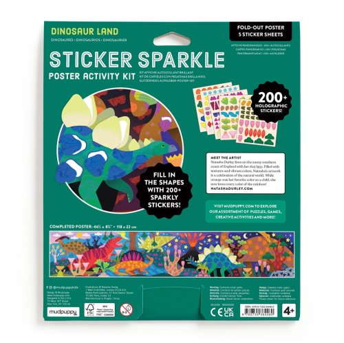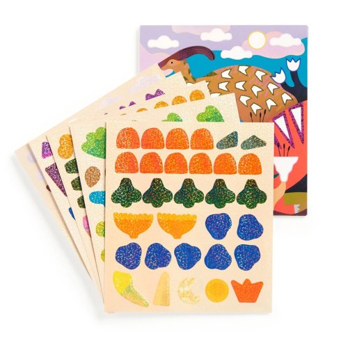 Rozvíjejte fantazii svého dítěte a vydejte se na dobrodružnou cestu do pravěku plnou třpytivých obrázků a zářivých barev! Sada samolepek obsahuje pestrobarevnou scénu prehistorického světa s více než 200 třpytivými holografickými samolepkami. Je interaktivní, zábavná a poskytuje dětem zážitky při hře bez obrazovek a podporuje učení. Rozvíjí dovednosti dětí v různých oblastech včetně koordinace ruka-oko, rozpoznávání barev, vizuálního rozlišování, kreativity a vytrvalosti. Samolepky se snadno odlepují a nalepují, takže i malým ručičkám umožňují tvorbu krásných uměleckých děl. Sada byla vytvořena podle námětu Natashi Durley, umělkyně, která svým dílem oslavuje přírodu a miluje všechny barvy duhy. Vyrobeno převážně z papíru s certifikací FSC® a potištěno rostlinnými barvami. Všechny produkty splňují bezpečnostní předpisy CPSIA, ASTM a CE. Hlavní vlastnosti: oboustranná scéna, více než 200 samolepekrozvíjí koordinaci ruka-oko, rozpoznávání barev, kreativitu a vytrvalostnámět Natasha Durleyvyrobeno převážně z papíru s certifikací FSC®potištěno rostlinnými inkoustyvhodné od 4 let Značka a certifikát FSC® (Forest Stewardship Council) zaručuje, že dřevo, ze kterého byl produkt vyroben, nebylo vytěženo nelegálně a pochází z lesů obhospodařovaných šetrným či přírodě blízkým způsobem, ve kterém jsou dodržovány přísné environmentální a sociální požadavky. Značka FSC® na výrobku znamená, že svým nákupem pomáháte chránit lesy a podporujete šetrné, odpovědné či přírodě blízké hospodaření, díky kterému jsou naše lesy stabilnější, zdravější, mají přirozenou druhovou skladbu a lépe odolávají negativním následkům klimatických změn.
