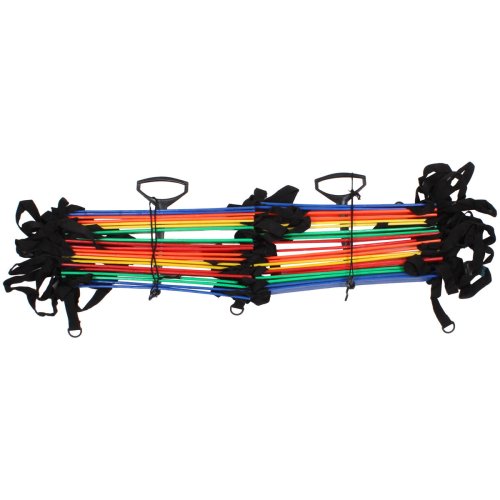 Dvouřadý agility žebřík Merco MultiColour Dual je tréninková pomůcka pro kondiční přípravu sportovců. Celkem 20 plastových příček u provedení 4,5m, nebo 40 plastových příček u provedení 9m lze snadno nastavit pro přizbůsobení vzdálenosti mezi jednotlivými příčkami podle potřeb a nápaditosti uživatele. Součástí agility žebříku Merco MultiColour Dual jsou madla, která se protahují středem příček a zabraňují zamotání žebříků + obal pro snadné uskladnění. U obou variant žebříku je šířka 43 cm. Upozornění: Agility žebříky neslouží v žádném případě k lezení, nýbrž ke cvičení techniky a rychlosti sportovců na zemi.