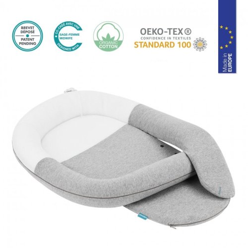 Toto hnízdečko do postýlky je vyrobeno z měkké organické bavlny v Evropě a certifikováno Oeko-Tex®. Bílá 3D síťovina je prodyšná a podporuje tak dobrou cirkulaci vzduchu v oblasti hlavy dítěte.