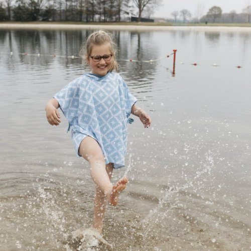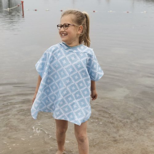 Mušelínové poncho s kapucí. Lze jej použít po koupeli, u bazénu, na pláži...