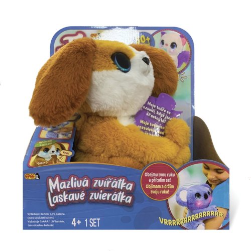 Interaktivní plyšový pejsek Ferda z řady My Fuzzy Friends Mazlivá zvířátka reaguje na dotek a interakci více než 50 různými zvukovými a pohybovými reakcemi. Jeho plyšové tlapky mají speciální klouby, které je možné roztáhnout, pejsek pak sám obejme dětskou paži a přitulí se k ní. Pejska je možné hladit, lechtat, nakrmit, utřít mu nos nebo třeba uložit ke spánku. Svoje potřeby vyjádří rozsvícením tvářiček, jejichž barevností vyjadřuje pejsek některé své potřeby společně se specifickým zvukem. Výrobek vyžaduje 3× AAA baterie, jsou součástí balení. Pro děti od 4let.