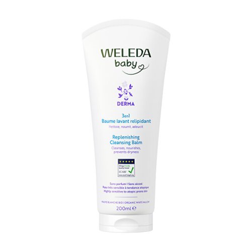 Suchá, citlivá nebo atopická pokožka reaguje už na běžné mytí podrážděním, pnutím nebo svěděním. Tento přírodní mycí balzám 3v1 jemně čistí, zklidňuje a zároveň během koupele intenzivně vyživuje a hydratuje. Byl vyvinut ve spolupráci s porodními asistentkami a dermatology speciálně pro potřeby dětí se suchou, reaktivní až atopickou pokožkou a je vhodný od narození. Díky obsahu 30 % hydratačních a výživných složek – rostlinných olejů, omega-3 a 6 mastných kyselin a prebiotických polysacharidů – pokožku nejen šetrně očistí, ale zároveň ji relipidačně ošetří, zklidní a ochrání před dalším vysušováním. Účinnost balzámu potvrdila in-use studie provedená na 31 dětech a kojencích (Weleda, 2025). Už po 5 dnech pravidelného používání 2x denně se výrazně zlepšil stav epidermální bariéry – na rozdíl od běžných mycích produktů, které ji často narušují. Podobný účinek byl potvrzen také u dospělých se suchou a citlivou pokožkou.