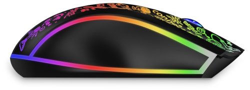 Celá plocha myši i posuvného kolečka je podsvícená LED světly v 7 duhových barvách. Ty se postupně a s plynulými přechody střídají. Užijte hraní na plno a kochejte se jejím atraktivním designem.