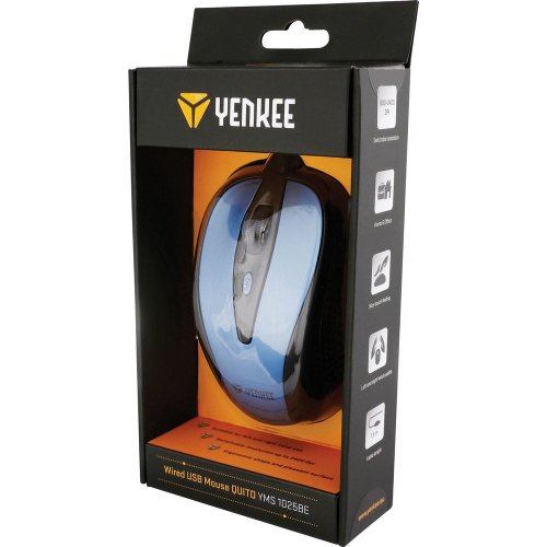 Drátová USB myš Yenkee YMS 1025BE Quito je ideální volbou pro kancelářské i domácí použití, kdy zajistí komfortní a plynulé ovládání a přesné sledování pohybu pro snadný výběr textu i další pracovní úkony. Je vybavená optickým senzorem Sunplus 168A, který nabízí 125Hz frekvenci snímání s dobou odezvy 8 ms, rychlost až 25 IPS a přepínatelné rozlišení v hodnotách 800 / 1 200 / 1 600 / 2 400 DPI (výchozí 1 200 DPI). Na těle myši pak naleznete tradiční pravé/levé tlačítko, vroubkované rolovací kolečko s prostředním tlačítkem a DPI přepínač pro rychlou změnu citlivosti.