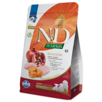 Vyvážené krmivo pro štěňata všech plemen po odstavu obsahuje 96 % proteinu živočišného původu. Hlavním zdrojem vysoce kvalitních bílkovin je kuřecí maso. Přidaná dýně je bohatá na betakaroteny a přírodní antioxidanty, chrání kardiovaskulární systém, podporuje imunitní systém a správnou motilitu střev. Rybí olej zaručuje optimální poměr omega-3 a omega-6 mastných kyselin pro dobrou kondici kůže a srsti a její regenerační schopnost. Přídavek glukosaminu a chondroitinu vyživuje kloubní chrupavky, stimuluje růst a ochraňuje klouby. Krmivo neobsahuje obiloviny, geneticky modifikované suroviny, umělá barviva, bílkoviny ze sóji, hormonální ani antibiotická rezidua. Složení: vykostěné kuře (24 %), dehydratovaný kuřecí protein (22 %), hrachový škrob, kuřecí tuk, dehydratovaný protein ze sledě, sušená dýně (5 %), sleď, sušená vejce, rybí olej (ze sledě), kuřecí chrupavky (zdroj glukosaminu a chondroitin sulfátu), sušená vojtěška, vláknina z hrachu, inulin, fruktooligosacharidy, extrakt z kvasnic (zdroj mannanoligosacharidů), sušené granátové jablko (0,5 %), sušené mrkve, sušený špenát, sušená jablka, semena psyllia (0,3 %), sušený sladký pomeranč, sušené borůvky, chlorid sodný, sušené pivovarské kvasnice, kurkuma (0,2 %). Analytické složky: hrubý protein 30 %, hrubý tuk 20 %, hrubá vláknina 1,1 %, vlhkost 9 %, hrubý popel 7,9 %, vápník 1,1 %, fosfor 0,91 %, omega-6 mastné kyseliny 3,2 %, omega-3 mastné kyseliny 0,7 %, DHA 0,4 %, EPA 0,2 %, glukosamin 1 200 mg/kg, chondroitin sulfát 900 mg/kg. Nutriční doplňkové látky na 1 kg: vitamín A 19 200 MJ, vitamín D3 1 920 MJ, vitamín E 720 mg, vitamín C 192 mg, niacin 48 mg, kalcium D-pantothenát 19,2 mg, vitamín B2 9,6 mg, vitamín B6 7,7 mg, vitamín B1 5,8 mg, biotin 0,48 mg, kyselina listová 0,58 mg, vitamín B12 0,12 mg, cholinchlorid 2 800 mg, betakaroten 1,5 mg, zinek (chelát zinku hydroxy analogu methioninu) 163,8 mg, mangan (chelát manganu hydroxy analogu methioninu) 64,6 mg, železo (chelátová forma železa (II) hydrát) 58,3 mg, měď (chelát mědi hydroxy analogu methioninu) 15,8 mg, selen (inaktivované kvasinky obohacené selenem) 0,00088 mg, DL-metionin technicky čistý 6 000 mg, taurin 1 000 mg, L-lysin-monohydrochlorid technicky čistý 400 mg, L-cystin 400 mg, L-karnitin 300 mg. Senzorické doplňkové látky: extrakt ze zeleného čaje 100 mg, extrakt z rozmarýnu. Antioxidanty: extrakty tokoferolu z rostlinných olejů. Metabolizovatelná energie: 4 189 kcal/kg Krmný návod: